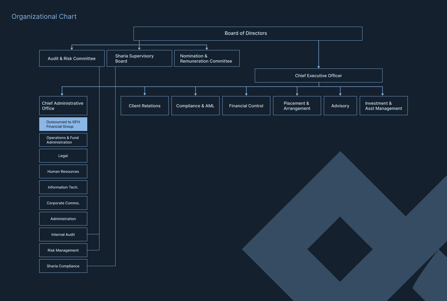 GFH Capital’s Corporate Governance – the system of procedures and principles governing how GFH Capital organizes its leadership, its management and its operations – is fundamental to GFH Capital’s successes and that of its stakeholders. GFH Capital has designed its corporate governance to produce an efficient, entrepreneurial decision-making structure that is fair, transparent and accountable, and that aligns the profits of investors, management and employees with those of its shareholders, financiers and investors.